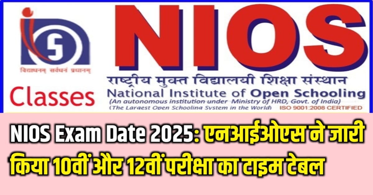 नेशनल इंस्टीट्यूट ऑफ ओपन स्कूल (NIOS) ने अप्रैल NIOS Exam Date 2025 सेशन के लिए क्लास 10th और 12th की थ्योरी परीक्षा का टाइम टेबल तय कर दिया है.